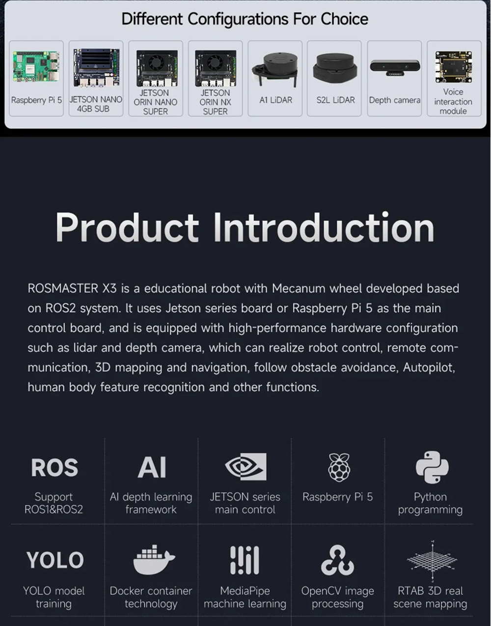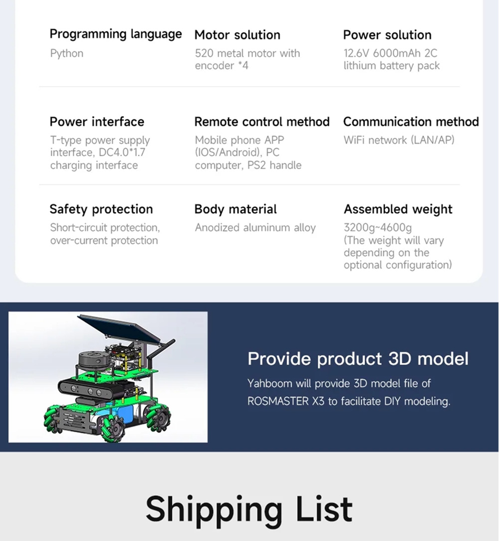 Model:ROSMASTER X3 ROS2 educational robot