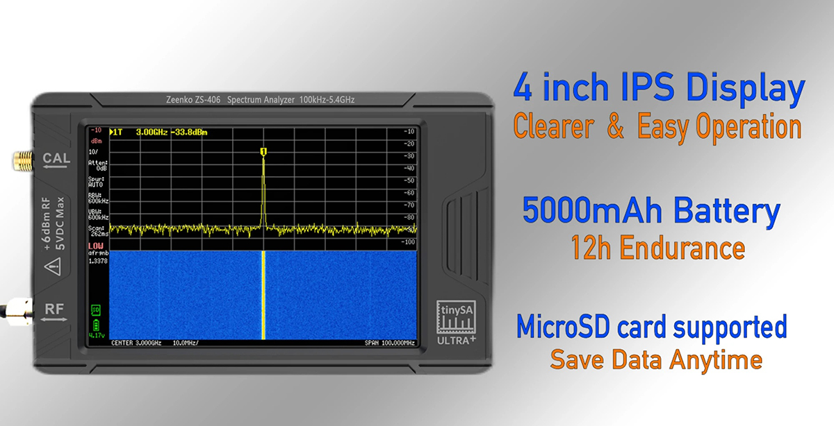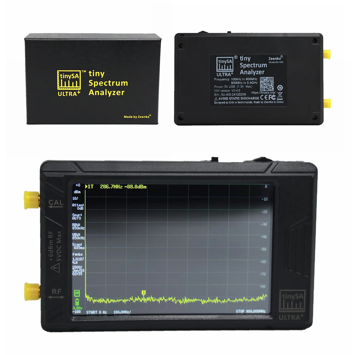 Zeenko TinySA ULTRA Plus ZS-406 Handheld Tiny Spectrum Analyzer 5000mAh Battery 900MHz-5.4GHz 4-Inch Display