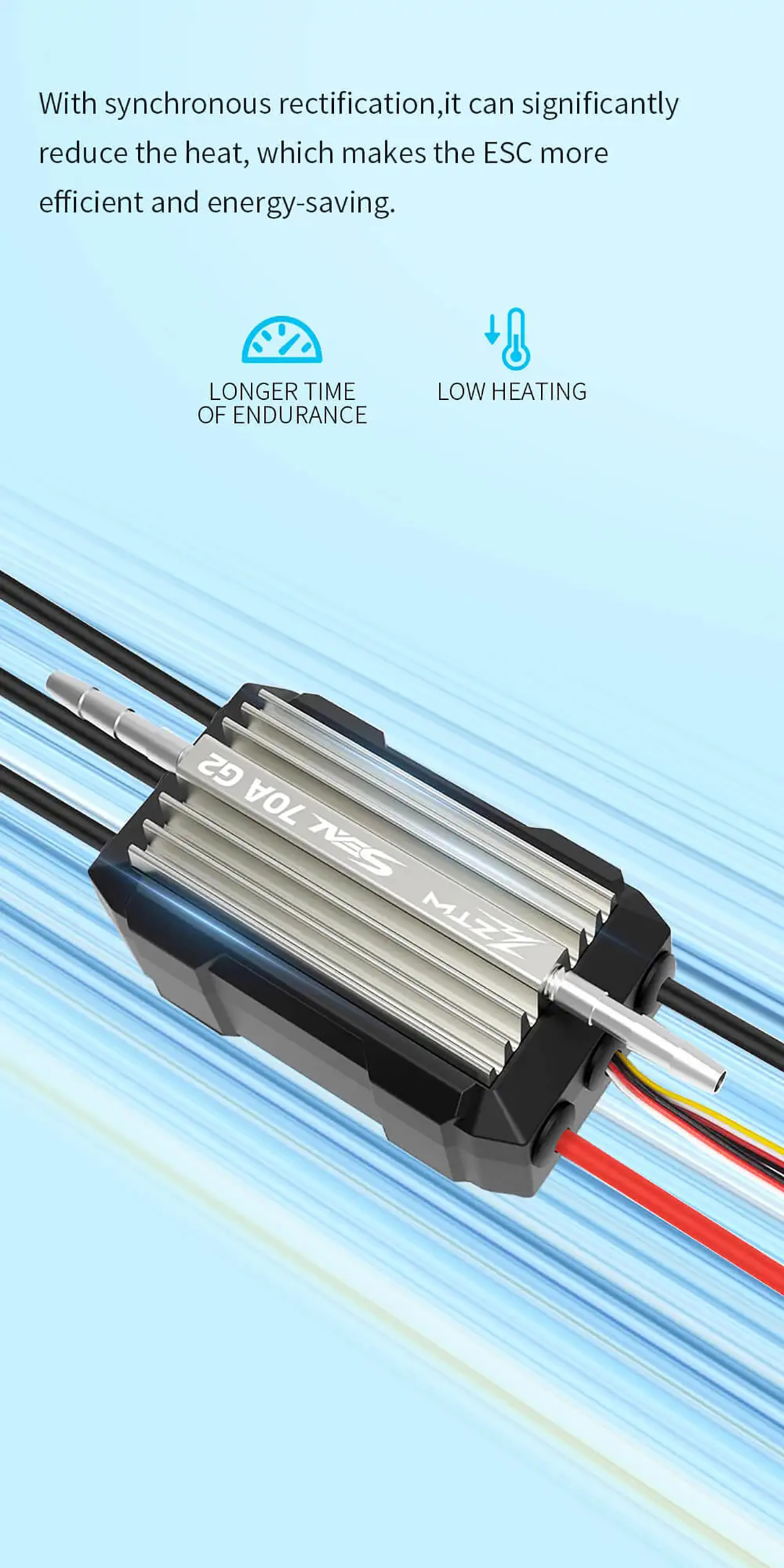 The ESC has freewheeling which makes the ESC with higher driving efficiency and more energy-saving.