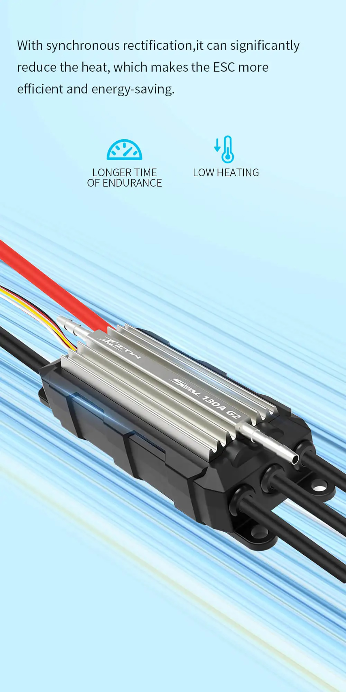The ESC has freewheeling which makes the ESC with higher driving efficiency and more energy-saving.