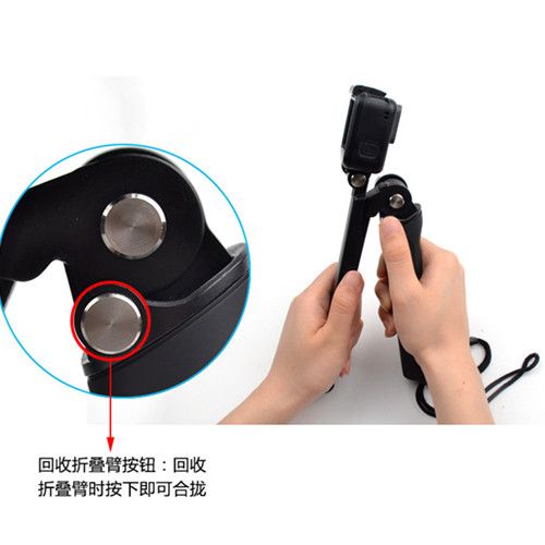 This versatile mounting bracket is primarily used as a camera handle, swivel arm or tripod. The folding arm is ideal for shooting POV or cam motion footage, so you can easily take a self-portrait and the mounting bracket does not appear in the lens. It can also be used as a camera handle when removed from the folding arm. The handle has a lightweight mini tripod that can be removed for stand-alone use or used with the handle.