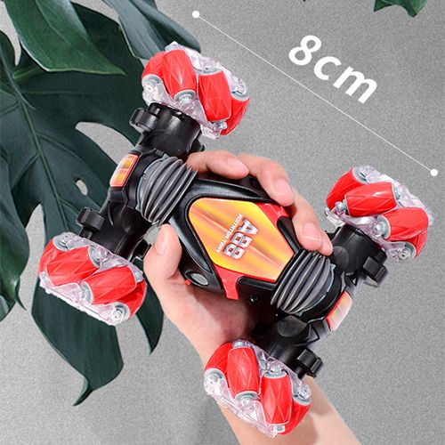 * Two Modes of Controlling: One mode is put the watch on your hand and control the stunt car by change your hand gesture, the other is use the remote controller to keep the car driving as you want. This car brings its owner to a new level of RC fun.