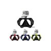 The Masks ergonomic mount ensures no contact of the camera with the forehead. Solid one piece rubber coated polycarbonate (standard A) frame surface. Includes camera mount, nut and thumbscrew, and there’s no needs for extra tools to adjust camera. The masks good resilience and soft-skin touch feeling skirt has a double feathered edge skirt and wide split style strap design that combined for a perfect fit and seal on the face. The straps swivel buckles make adjustments easy and fast. The dual 4.0mm thick tempered safety glass lenses are ANSL-Z86.11-1985 compliant and provide a wide range of vision. The mask has an easy access one handed nose pocket for ear equalization. Mask is available in multiple colors.