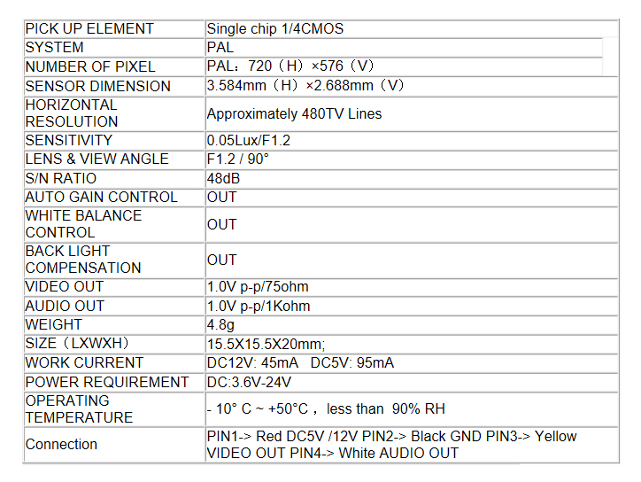 FPV 480 Line Super Light 4.8g CMOS Camera MC91 PAL