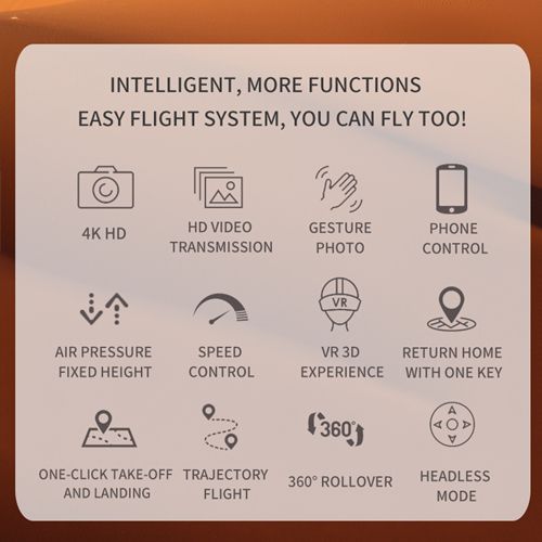 – During the flight, aim at the camera of the aircraft and make corresponding gestures. The aircraft wAutomatically recognize and can only react, support recognition to take pictures or video.