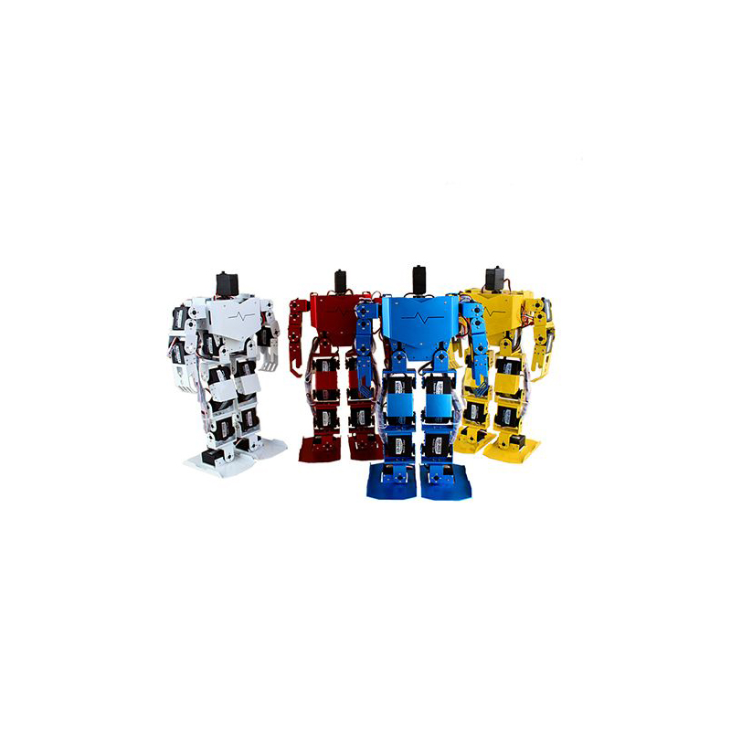 – This robot includes one head, one main body, two arms, two legs, use digital servo power. This robot could finish walking, squat, turning, side slide movements, and could dancing, fighting, or more complicated movements. If with related sensors, could climbing stairs, tracking lines, etc