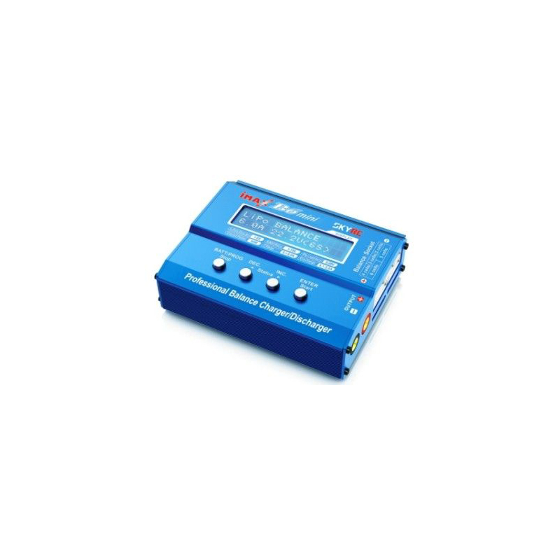 SKYRC B6 mini is a high-performance, micro processor control charge/discharge station with battery management suitable for use with all current battery types, with integral equalizer for six-cell Lithium- Polymer (LiPo), Lithium-Ferrum (LiFe) and Lithium-Ion (LiIon) batteries; maximum 6A charge current and maximum 60W charge power.