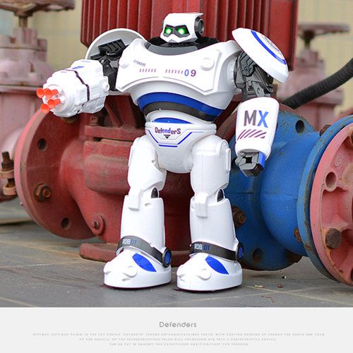 Product Functions: Life-like features of walking (forward/backward/turn left/turn right) and sliding, Tell stories, Dance, Launch missiles in different directions from the arms, Programmable movements, Audio and lights