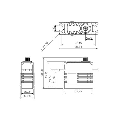 Rated torque(7.4V):15.0kg.cm(208.35oz/in)