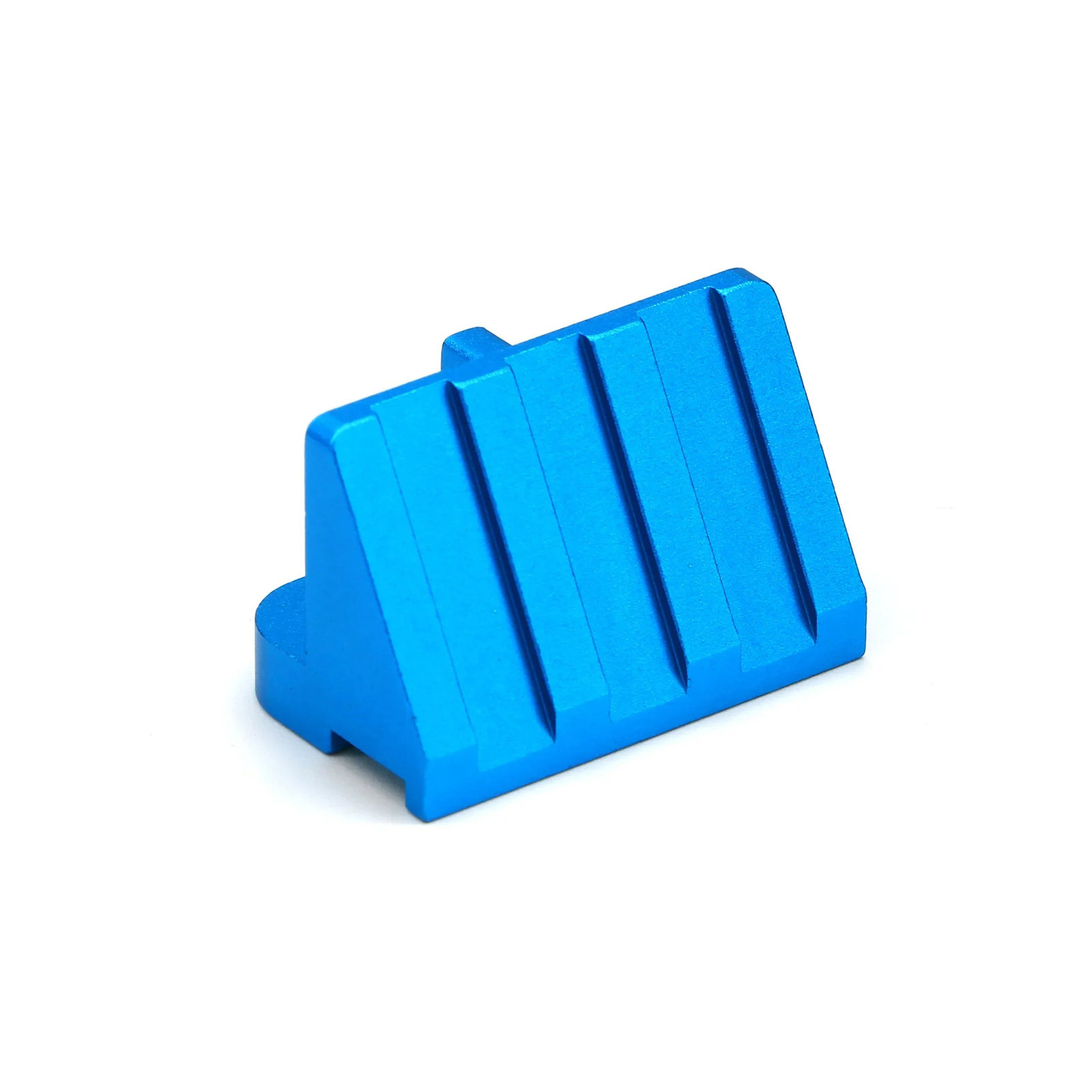 This is a lightweight and rigid one-piece aluminum front skid guard for big wheel chassis models, replacing the kit-standard molded part. Its skid angle of 30 degrees helps your model barrel over rough terrain and it helps insulate the chassis components against bumps and shocks.