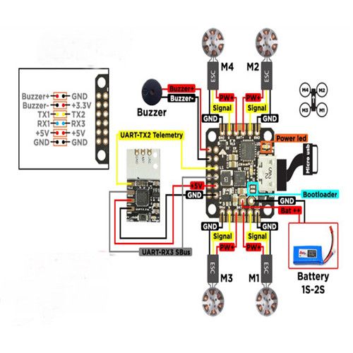 DIATONE MAMBA F411 35A AIO 6S 8bit Flight Controller Stack Internal USB 20mm/M2 for RC Drones DIY Parts