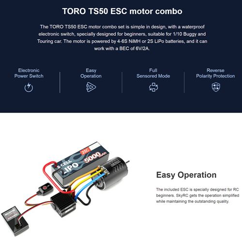 SkyRC TS50 50A Brushless Sensored ESC 17.5T 1870KV Brushless Motor Power System Combo for 1/10 Touring Car