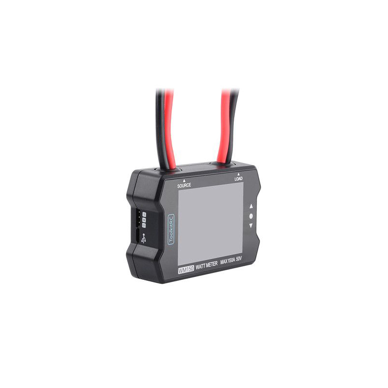 – ToolkitRC WM150 is a Watt Meter, which is capable to test voltage, power, current data of the electric equipment, like servo, ESC, battery, etc.