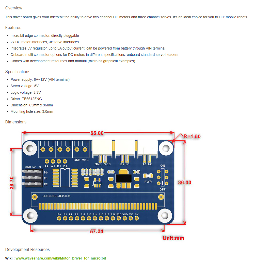 Waveshare Motor Driver Board 5V Regulator Drives Motors and Servos for micro:bit