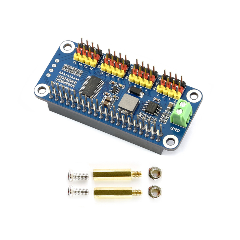 Servo Driver HAT For Raspberry Pi, 16-Channel, 12-Bit, I2C Interface, Straight Pinheader